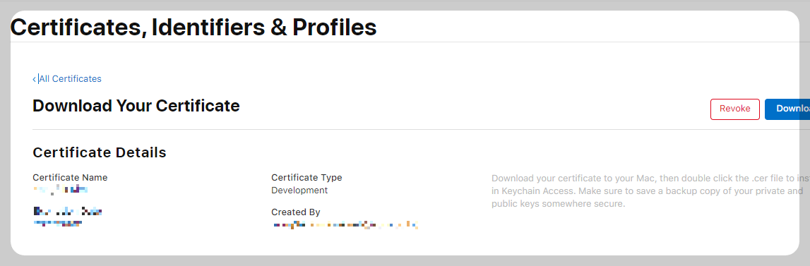 Revoke를 클릭하면 만료될 인증서가 삭제됩니다.