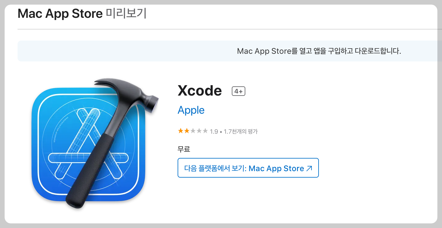 이제 맥북에서 Xcode 앱을 실행합니다.