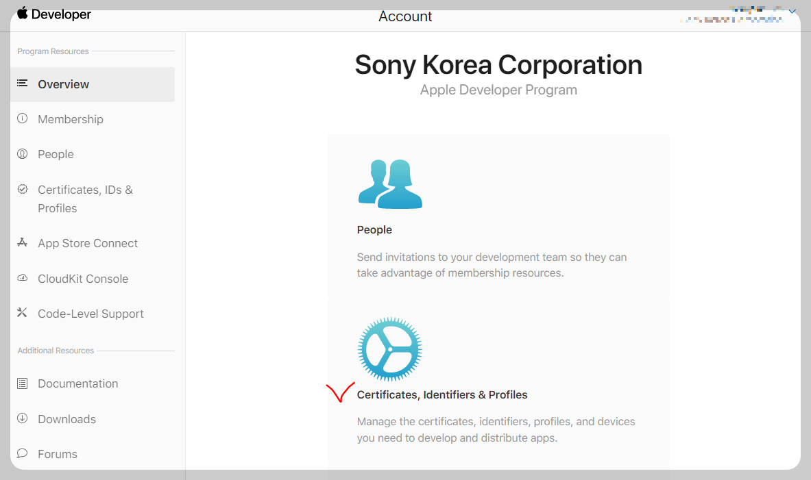 그다음 'Certificates, Identifiers & Profiles'을 클릭합니다.