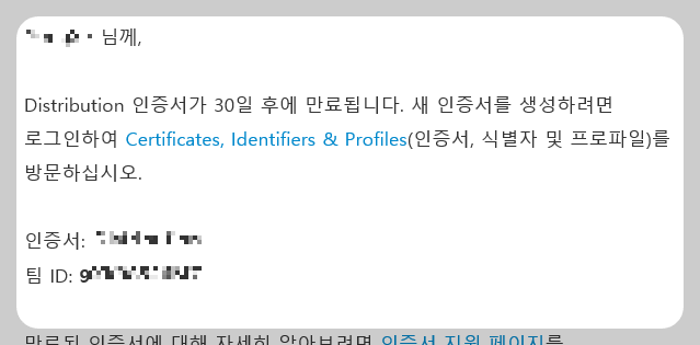 애플 ios 앱을 업로드하기 위해서는 Distribution Certificate가 유효한 상태여야 하는데요, 1년짜리 라이센스가 만료 1개월 나았다는 메일이 와서 연장하게 되었습니다. 갱신이 어렵지는 않지만, 모르는 상태에서 하려니 생각보다는 헷갈리는 과정이 좀 있었습니다. 그래서 이번 글에서는 애플 Distribution Certificate을 갱신하는 방법은 소개하겠습니다.