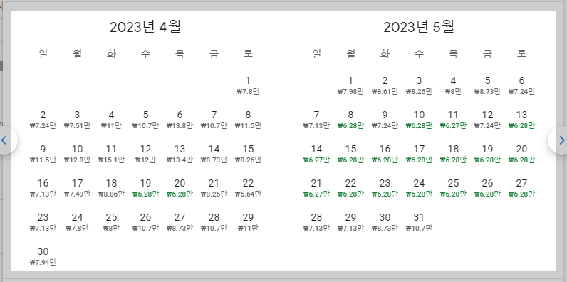 성수기라 10만원인줄 알았는데, 이젠 준 성수기도 이전보다 1.5배는 비싸진 것 같습니다. 2023년도 기준으로 비수기는 6만원대 성수기는 11만원이 넘어가고 있습니다. (월급 빼고 다 오르는 세상 ㅜ.ㅜ)
