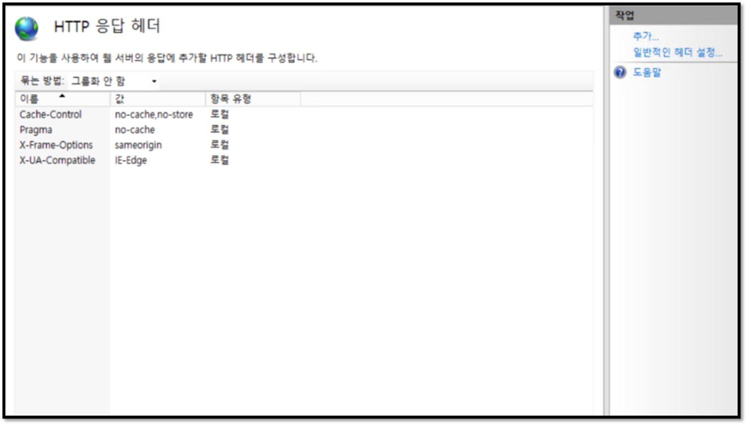 IIS 관리자 > HTTP 응답 헤더를 선택합니다.