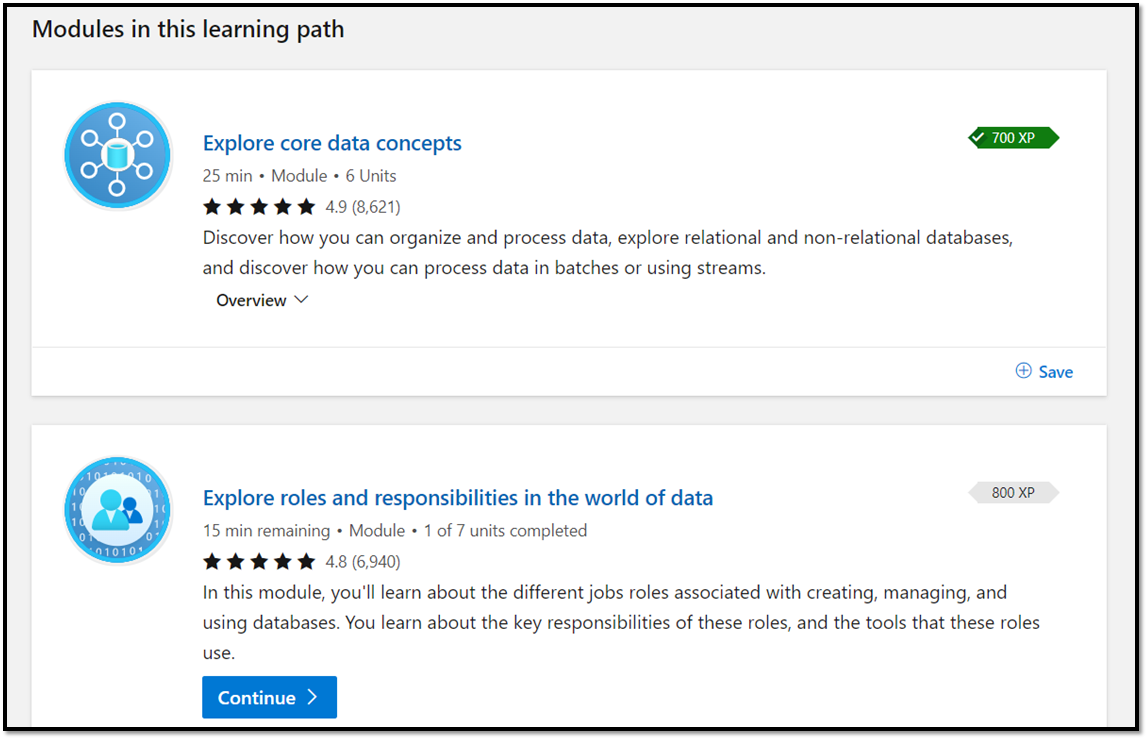 MS에서 제공하는 교육과정 중에 'Microsoft Azure Virtual Training Day: 데이터 기본'이라는 교육 과정이 있다. 해당 교육을 통해서 클라우드 환경에서 데이터 관리에 대한 내용을 다루고 있으며, 무료 온라인 교육으로 진행된다. 교육을 수료하면 DP-900 이라는 시험을 응시할 수 있는데, 교육 수료자는 무료이다.