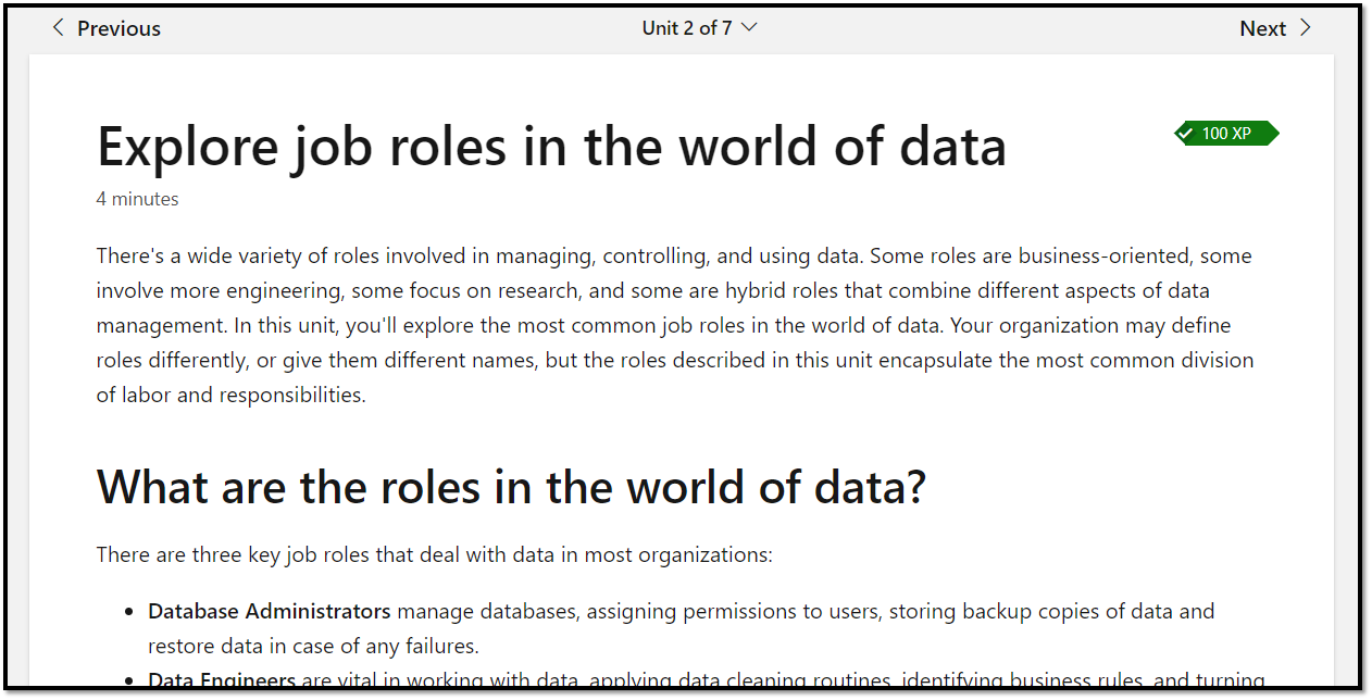 실제 러닝 코스는 아래와 같은 텍스트 방식이라 솔직히 재미는 없다ㅎㅎ 요즘은 영상으로 된 과정들이 많아서 오랜만에 텍스트를 잔뜩 읽으려니 지루했다. 확실히 요즘 세대는 쉽게 질리고 긴 텍스트는 읽지 않으려는 경향이 강한듯하다ㅋ 본인은 개발자로 일하기 때문에 전체적으로 이해하기는 쉬웠다.