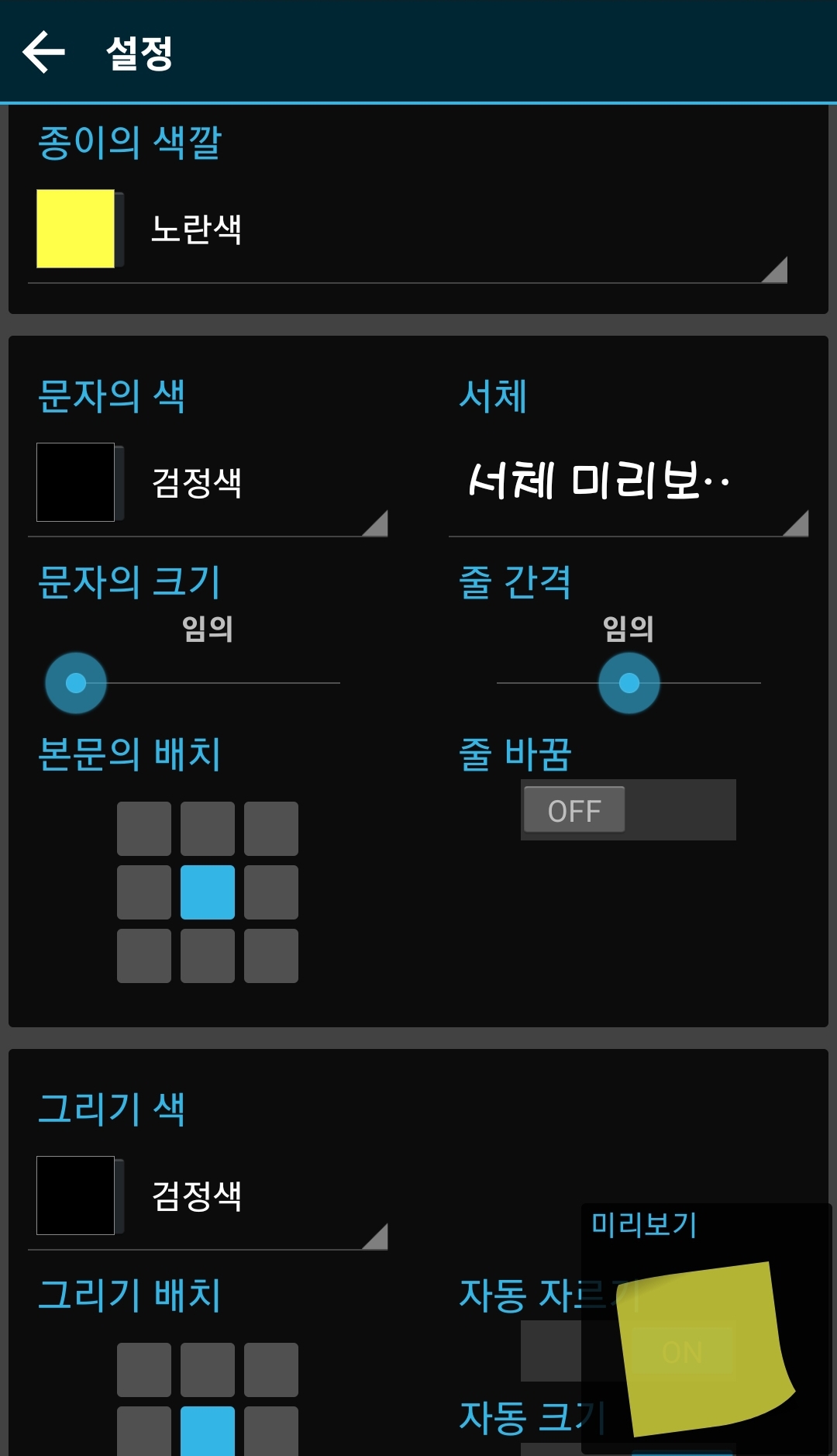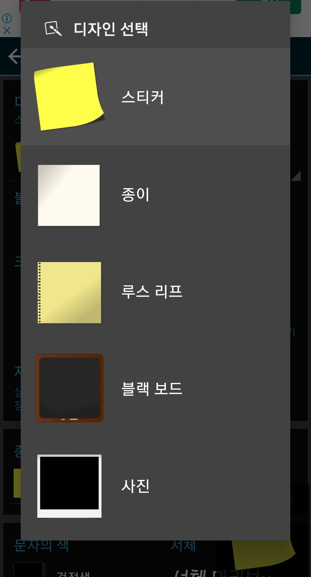 아래는 메모지 스타일을 변경하는 화면인데요,