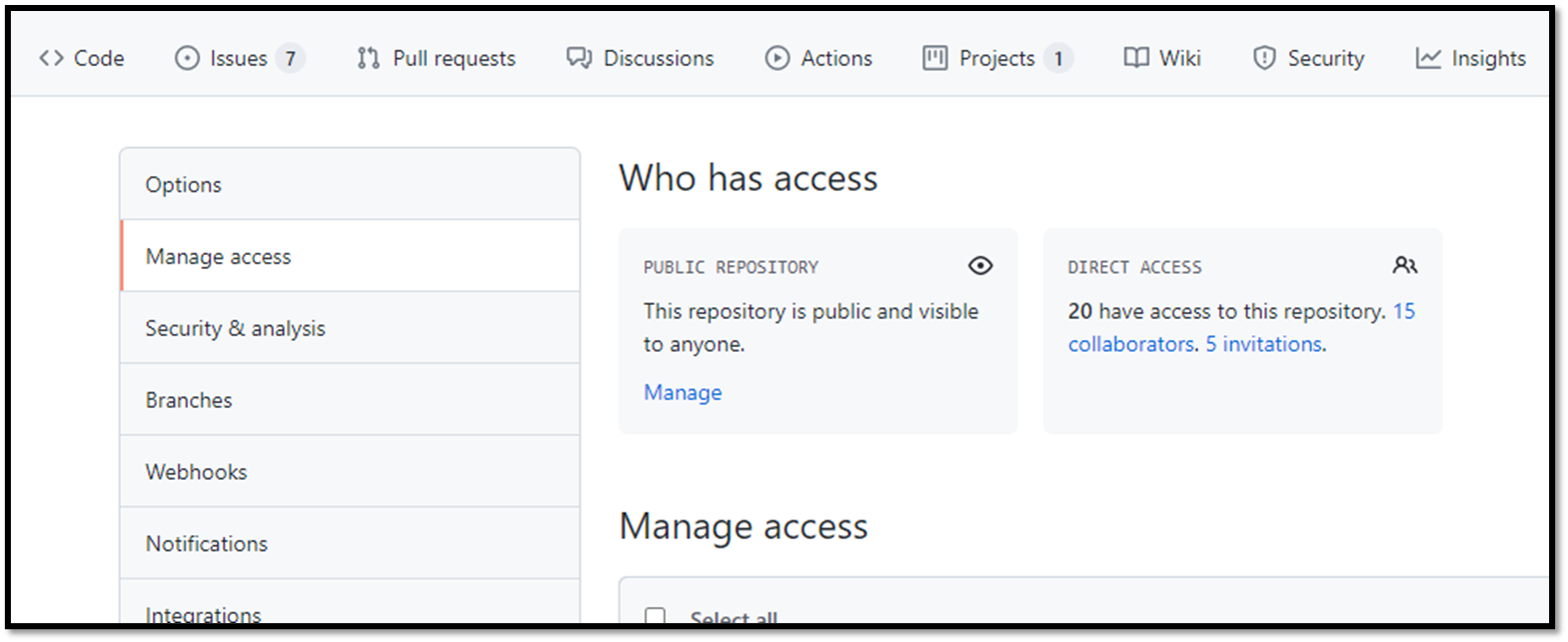 해당 레파지토리 > Settings > Manage Access로 이동합니다.