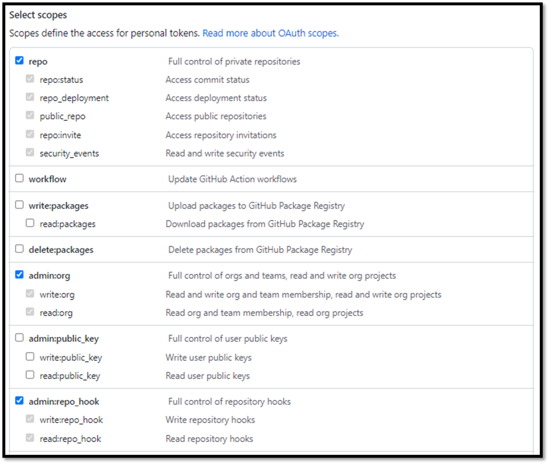 필자의 경우 외부에서 깃 레파지토리에 접근해야 하므로 repo는 전부 체크,
