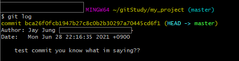 커밋 이력을 조회하고 싶으면, 명령어를 수행하면 된다.