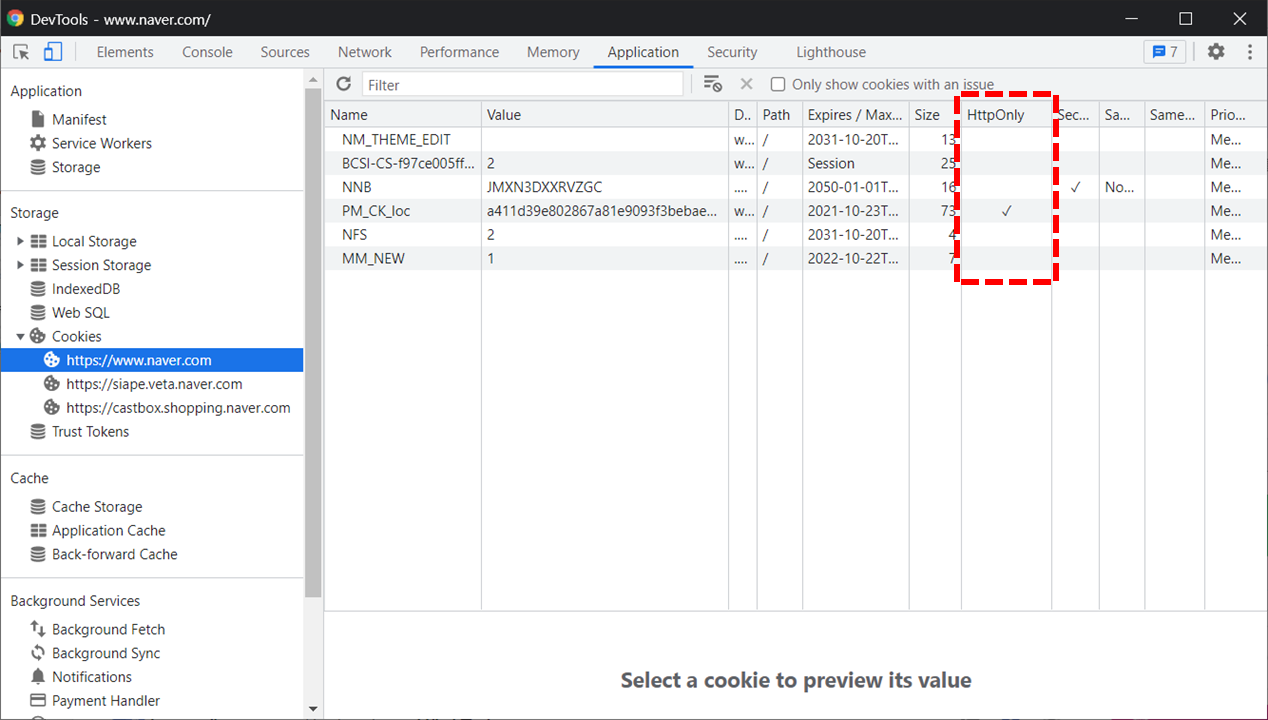 그럼 아래와 같이 HttpOnly에 체크가 생긴 걸 확인할 수 있습니다.