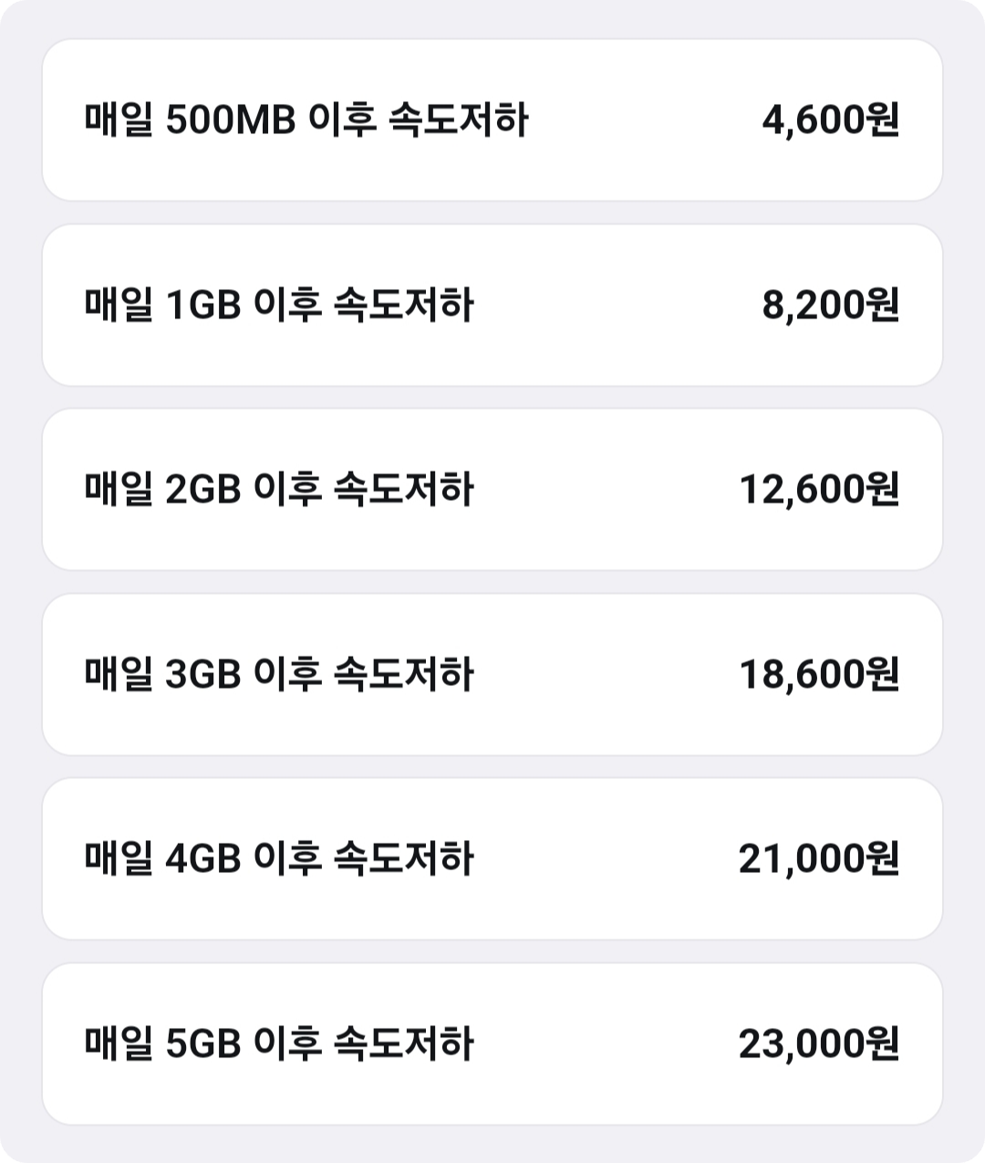 저는 6일 동안 매일 1GB 이용후 무제한을 5천원에 샀는데,