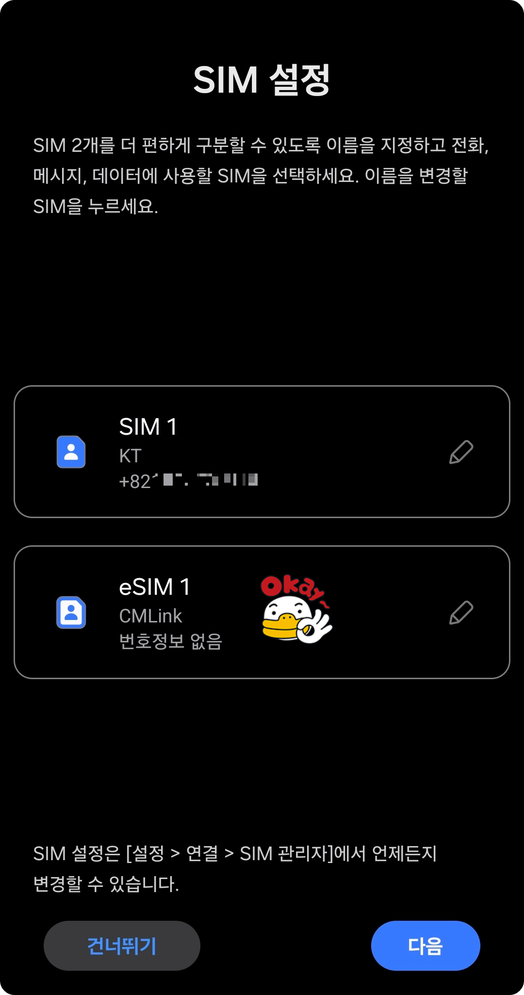 여기까지가 이심 설치 단계고, 활성화는 지금 하면 안 되겠죠??