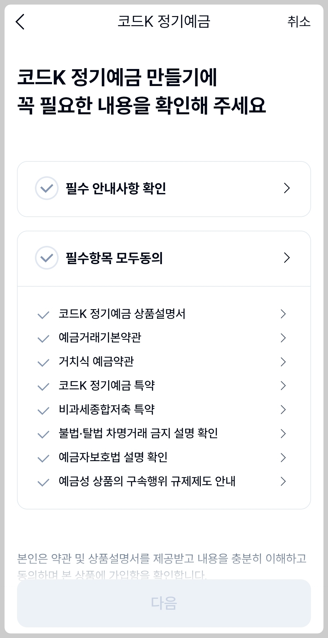 이제 다음을 선택하면 간편하게 계좌 개설이 끝났습니다!
