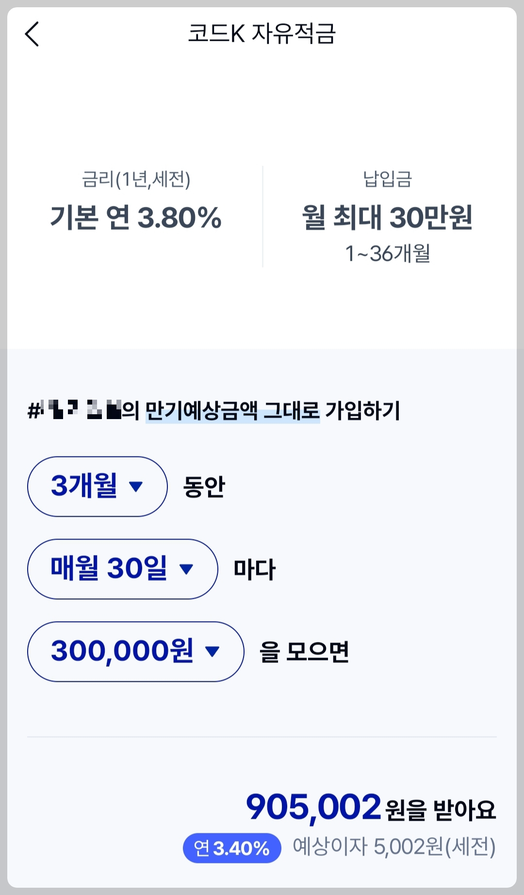 최종적으로 예금 가입 기간과 이자를 확인할 수 있고,