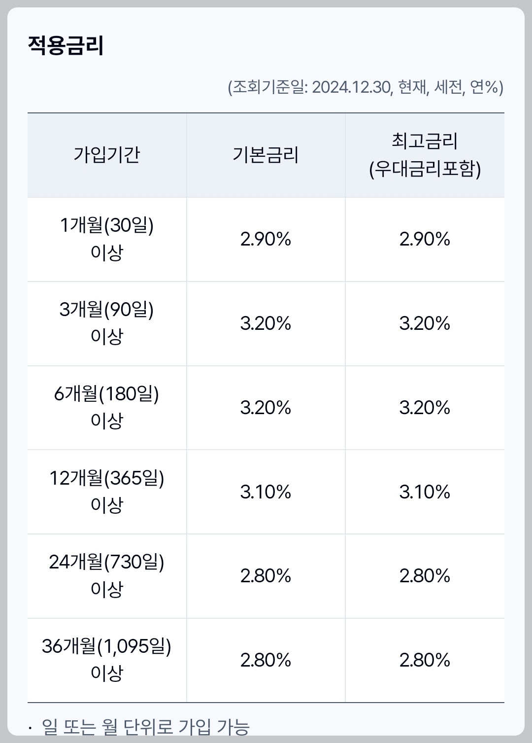 2024년 12월 기준 1년 이율은 아래와 같습니다.