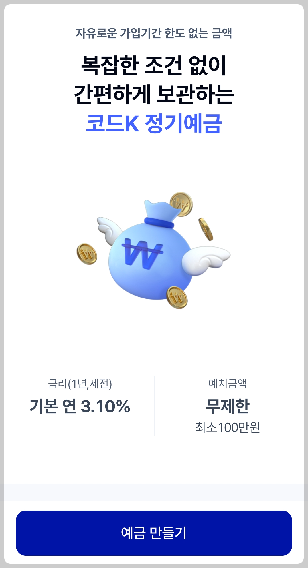 '코드K 정기예금'을 가입한 이유는 아래와 같습니다.
