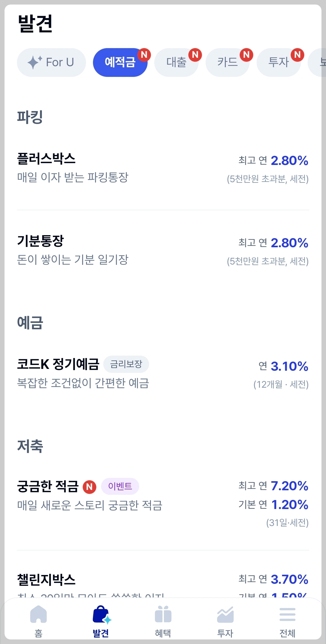 1금융권 시중 은행은 안정적이지만 이율이 상대적으로 낮은 편입니다. 이벤트로 이율이 좋은 예적금 계좌를 개설해 주는 게 아니라면 평상시에는 이율이 낮아서 인터넷 은행을 선호하는 편입니다. 그중에서는 앱이 편리한 케이뱅크와 토스를 주로 이용하고 있습니다.