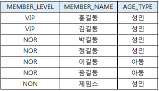 같은 멤버십 등급끼리 하나의 컬럼으로 표시하기