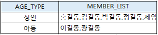 만약 LISTAGG만 사용한다면 모든 이름이 하나의 컬럼으로 표시됩니다.