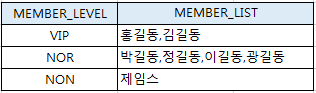 , LISTAGG(MEMBER_NAME, ',') WITHIN GROUP (ORDER BY MEMBER_LEVEL) AS MEMBER_LIST