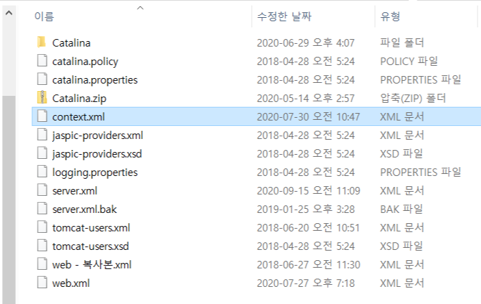 톰캣 디렉토리 > conf > context.xml 파일 수정
