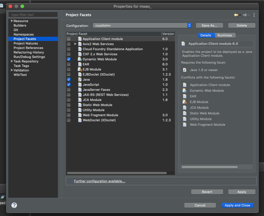우선 프로젝트 우 클릭 후 Project Facets를 클릭 한다.