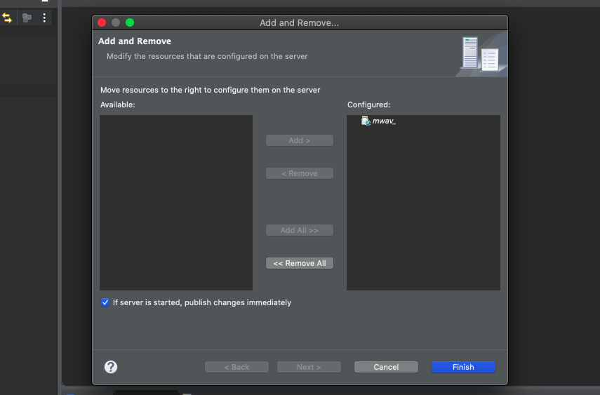 이제 다시 서버를 우클릭하여 Add and Remove를 가보면,