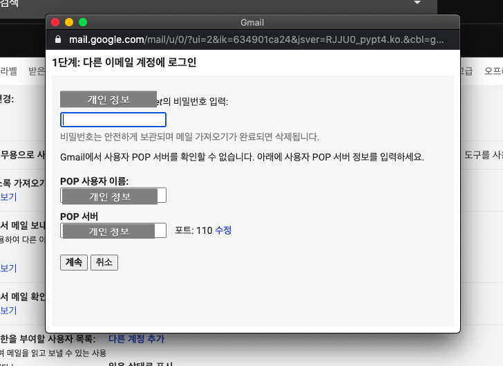 뜨는 팝업에 구글 지메일로 받고 싶은 이메일 계정 입력.