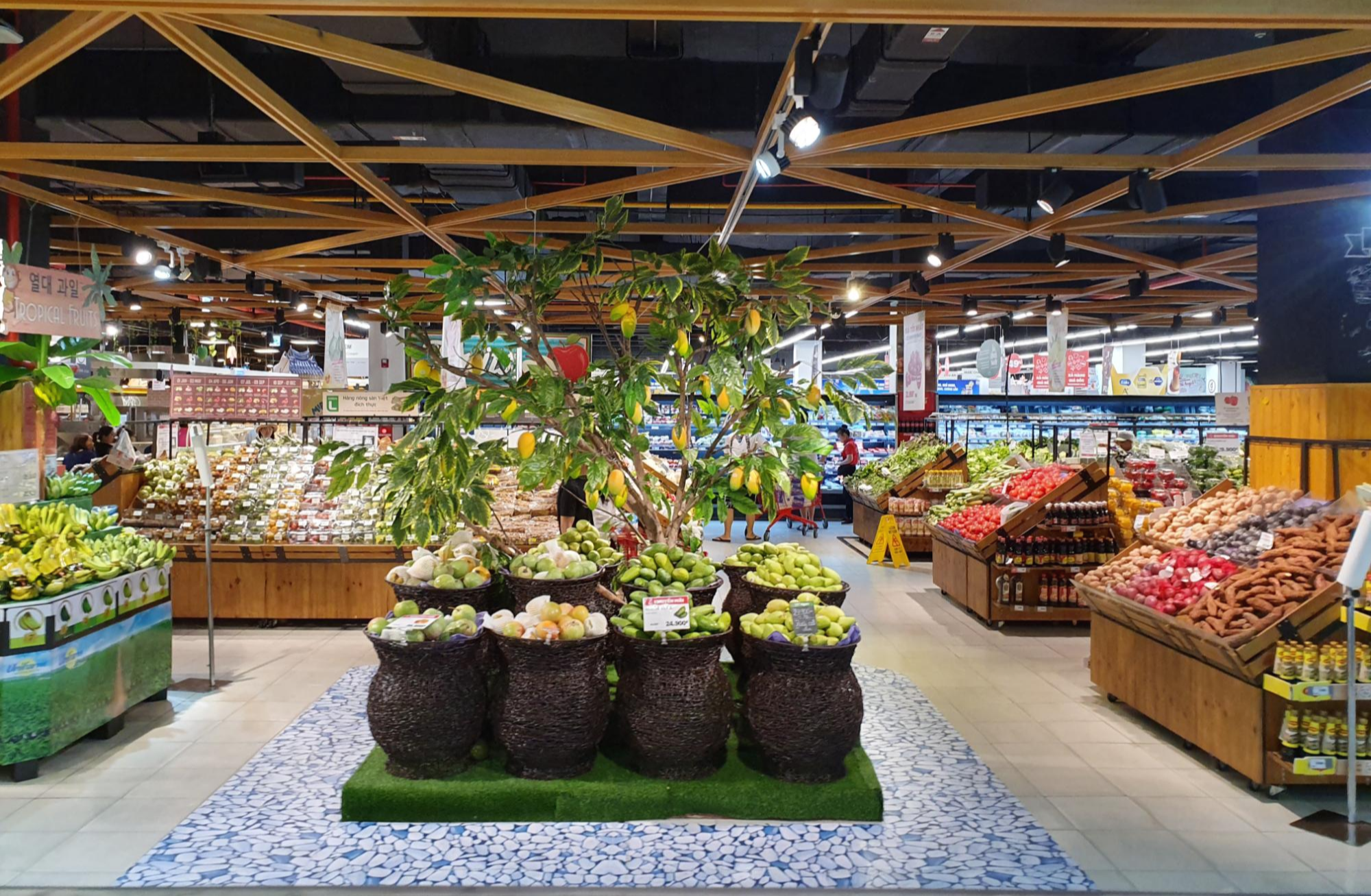 마음에 드는 남방을 장바구니에 담고, 이제 과일을 사기 위해 식품 코너로 이동했습니다.