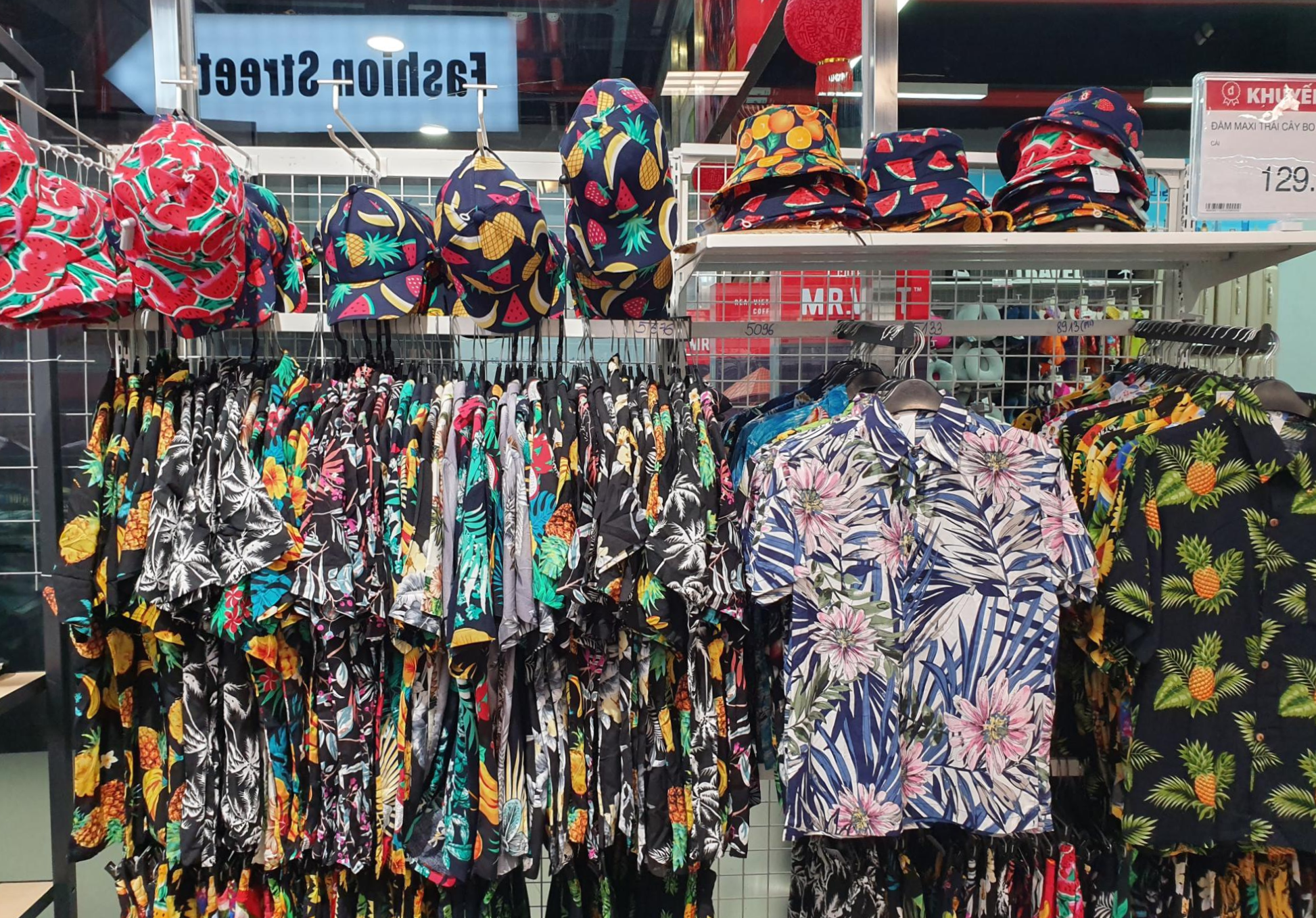 2층에 도착하자마자 의류 매장과 과일 매장이 펼쳐졌습니다. 당시 워낙에 날씨가 더워서 시원한 옷이 있으면 사야겠다고 생각하고 있었는데, 바로 마음에 드는 여름 남방을 발견했습니다! 가격은 한국돈으로 7천원에서 9천원 정도로 재질도 마음에 들어서 질렀습니다ㅋ