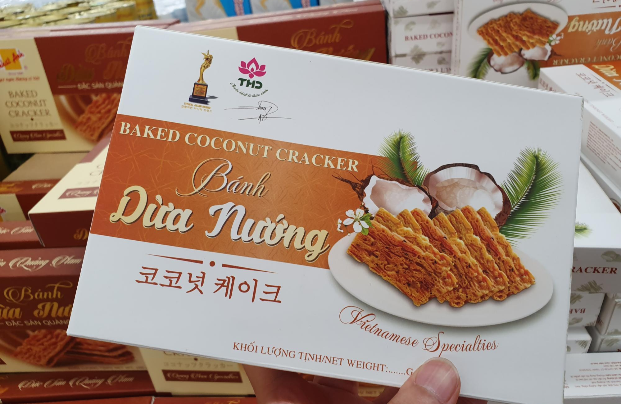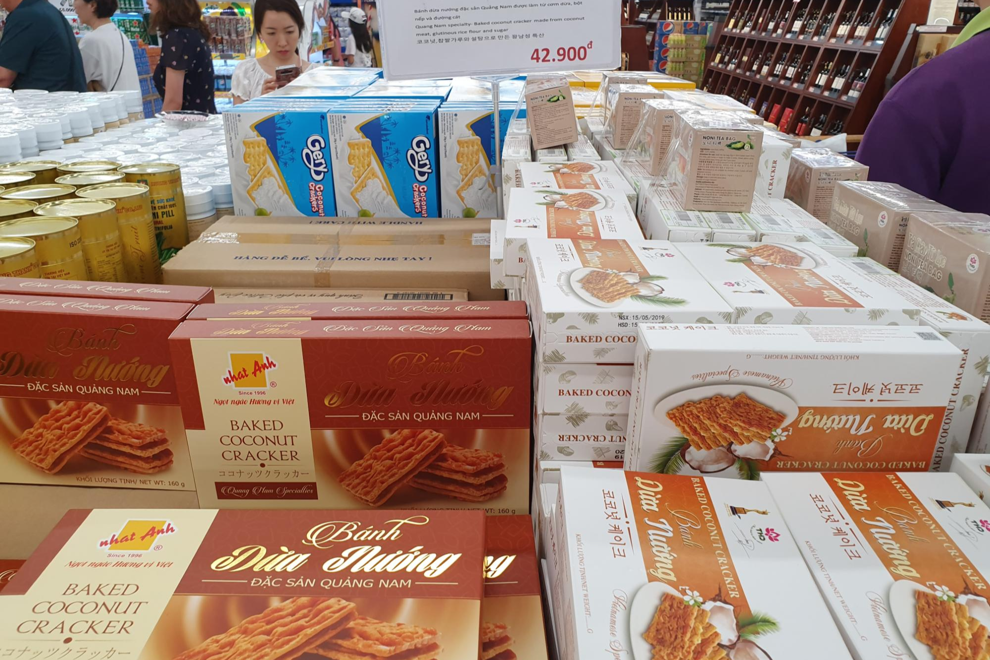 이제 말린 과일 코너를 찾아가는 중인데 세일 중인 코코넛 과자가 있어서 선물용으로 구매했습니다. 코코넛 과자가 뭔지 모르시는 중들을 위해 설명드리자면, 코코넛을 넣어서 튀긴 과자로 보통 위에 설탕을 살짝 뿌려서 바싹하고 고소하며, 단 과자입니다. 아래 사진에서는 갈색 박스가 코코넛 과자입니다. 개인적으로 추천드리는 선물로 한국돈으로 2천원이며, 저렴하고 맛도 좋습니다.