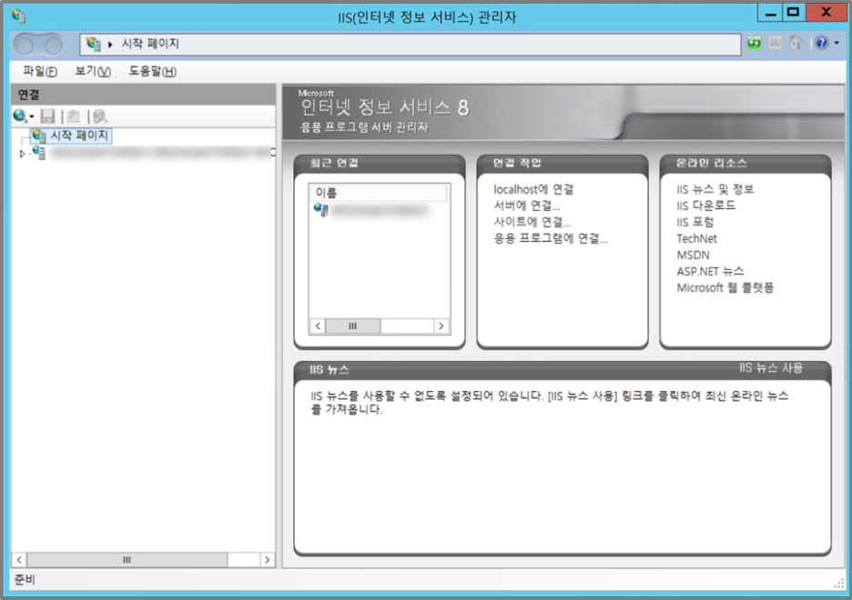 우선 서버에서 IIS 관리자를 실행시켜 줍니다.
