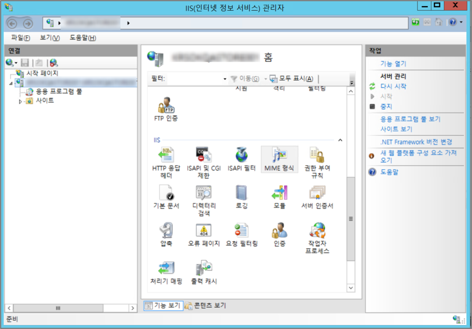 우선 서버에서 IIS 관리자를 실행시켜 줍니다.