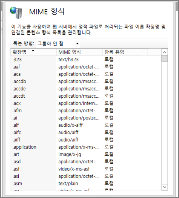 여기서 현재 등록되어 있는 (인식 가능한) 확장자들이 등록되어 있습니다.