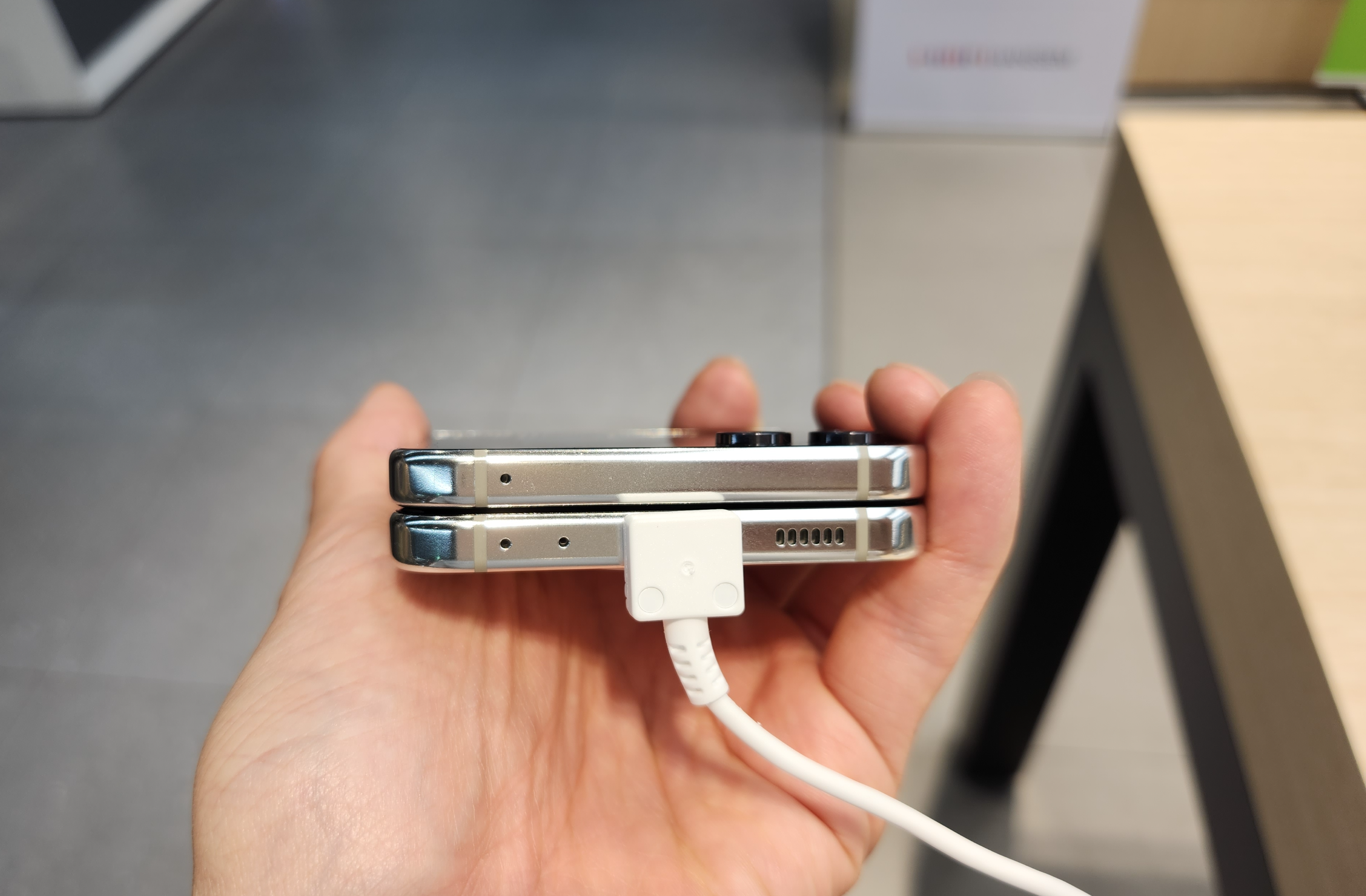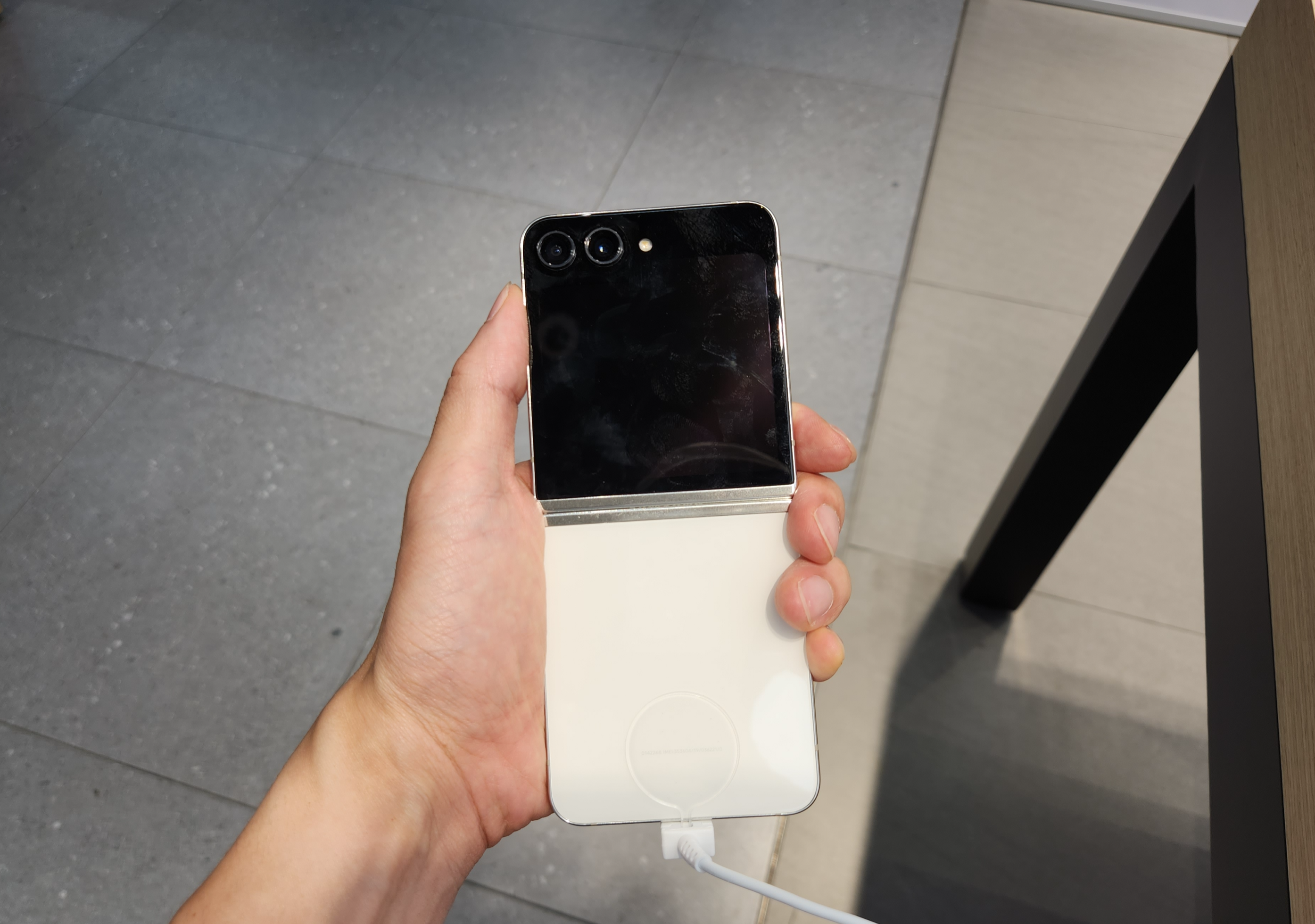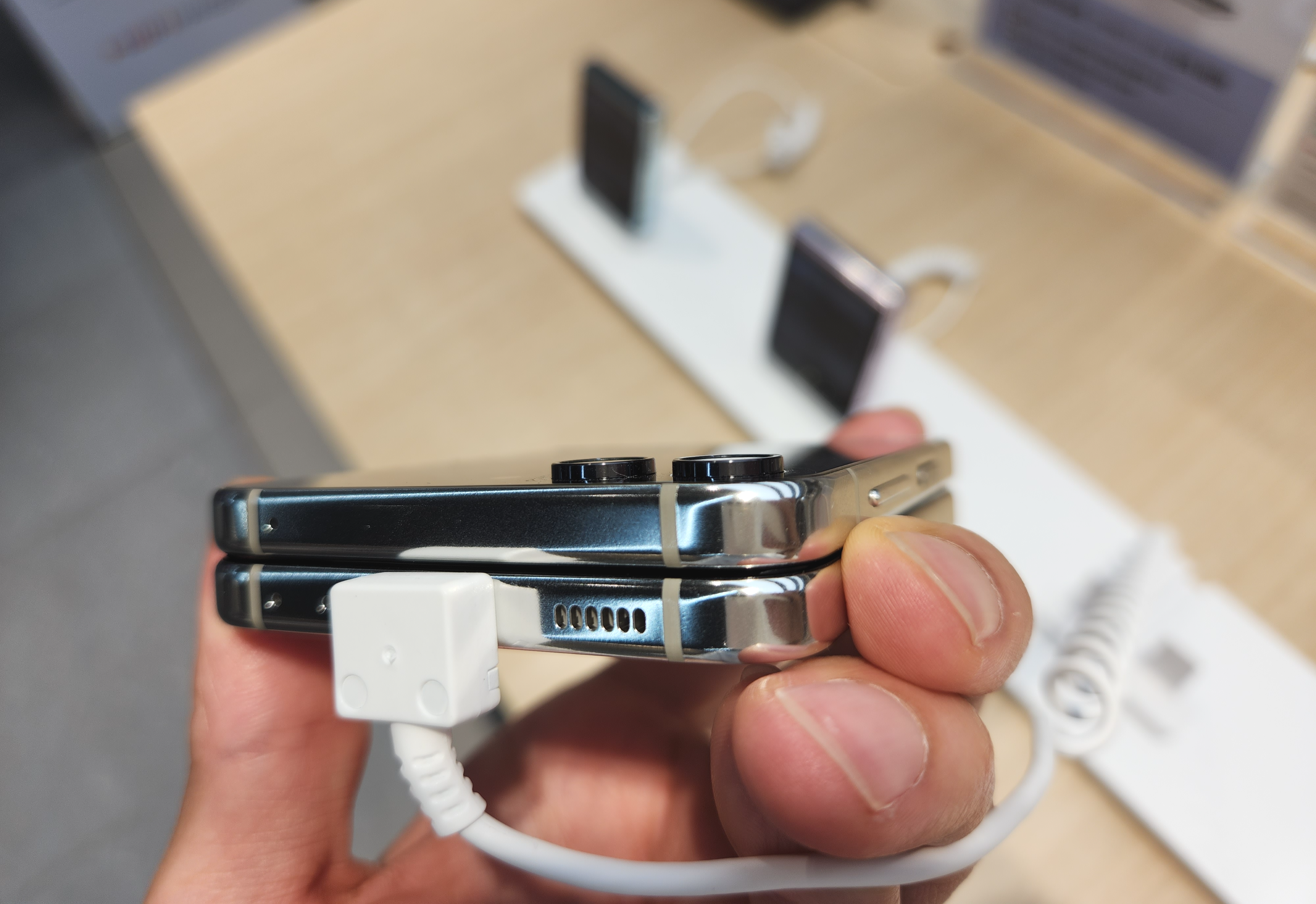 다음 변화는 플립5의 힌지에 있습니다! 힌지 부분 접었을 안쪽이나 바깥쪽이나 동일한 두께가 되었습니다. 이는 힌지 구조의 변화로 인한 것이며, 닫았을 때 힌지 부분은 최대 2mm 두께 감소가 생겼습니다. 다만 방수는 지원하나 방진을 지원하지 않는 건 아쉬웠습니다.