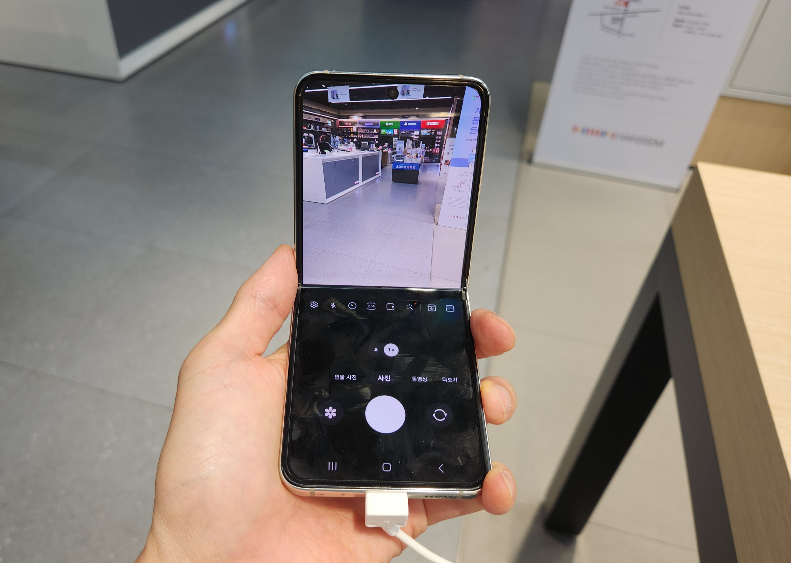 그래도 화질과는 별개로 갤럭시 플립을 접었을 때 다양하게 활용할 수 있는 점은 역시 최고입니다. 어디에 위태롭게 고정시킬 필요도 없고 삼각대도 필요 없기에 큰 이점이라 생각됩니다.